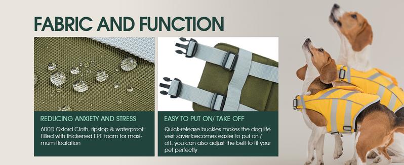 Kuoser High-Visibility Dog Life Jacket - Adjustable, Lightweight, and Reflective for Ultimate Safety and Floatation
