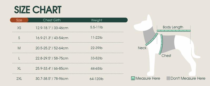 Available in a wide range of sizes from XS to XXL, our life jacket is suitable for almost all breeds, including Teddy, Chihuahua, Beagle, Poodle, Bulldog, Schnauzer, Labrador, Golden Retriever, and more. For the best fit, be sure to measure your dog's chest circumference twice before making a purchase.